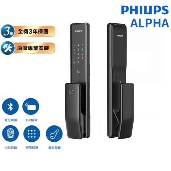 Philips 飛利浦 ALPHA 五合一推拉式電子鎖 曜石黑(指紋│卡片│密碼│鑰匙│藍芽/含安裝)